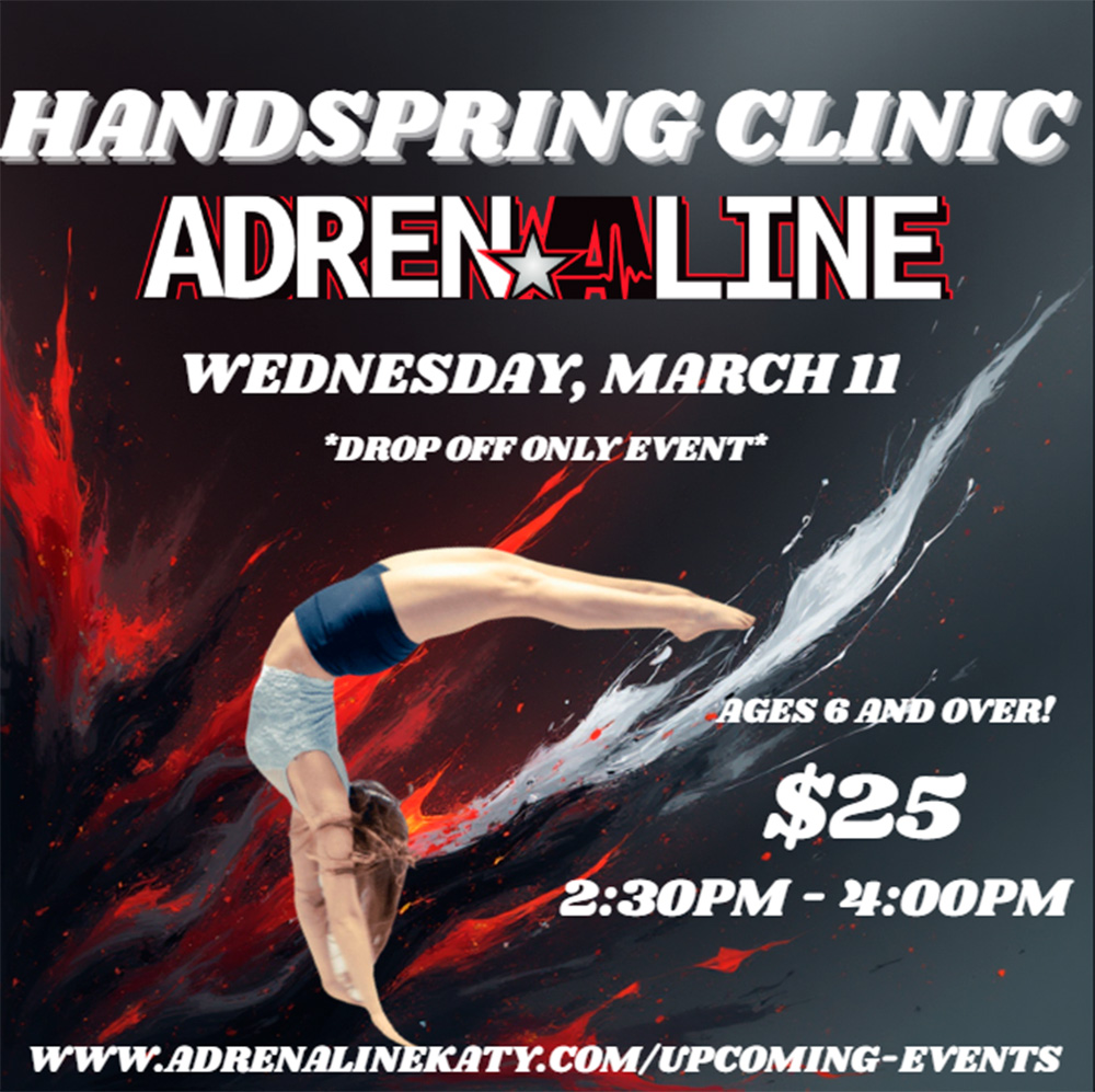 Get ready to level up your tumbling at our exciting Front & Back Handspring Clinic at Adrenaline Athletics. This fun and high-energy clinic is perfect for athletes ready to build...
