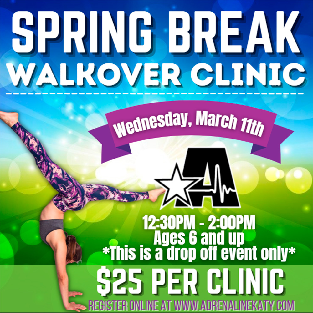 Join us for an exciting Walkover Clinic at Adrenaline Athletics. This fun and focused clinic is perfect for athletes who are ready to improve their front and back walkovers while...